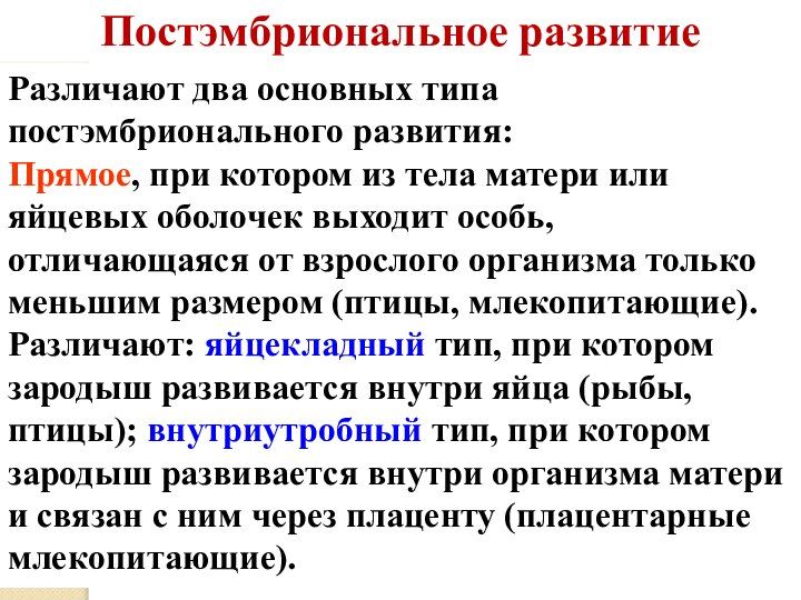 Прямой внутриутробный тип развития примеры