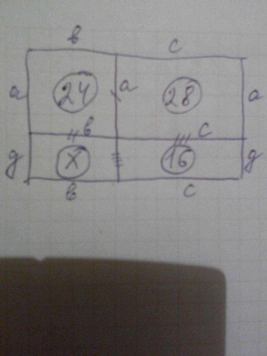 Прямоугольник разбит на четыре треугольника