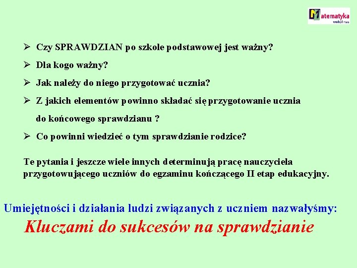 Jak dobrze przygotować dzieci do klasówki - poradnik dla nauczyciela . Aby dobrze przygotować dzieci do klasówki , nauczyciel powinien poświęcać jedną lekcję na jeden temat a także dawać czas na robienie przez uczniów notatek . Szkoła jest niezmiernie ważnym elementem życia każdego człowieka . Dzięki niej zdobywamy wiedzę, która . . .