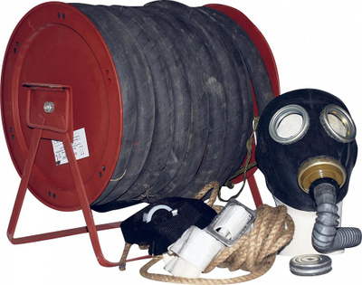Шланг из ПВХ, армированный спиралью из жесткого ПВХ ПШ- 20 ЭРВ - одноканальный с воздухоподводящим шлангом длиной 20 м; ПШ- 20 ЭРВ- 2 - двухканальный с двумя воздухоподводящими шлангами длиной по 20 м для работы двух человек одновременно . Противогаз ПШ- 20 ЭРВ 20 м ТУ 2568-020-54598330-04