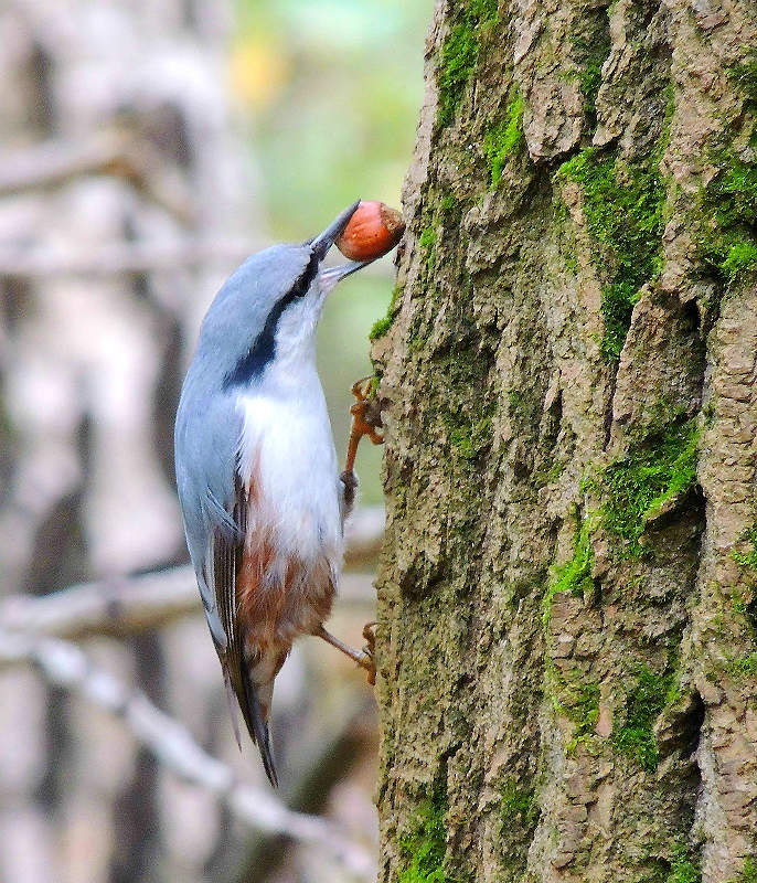 Птица ест лещину