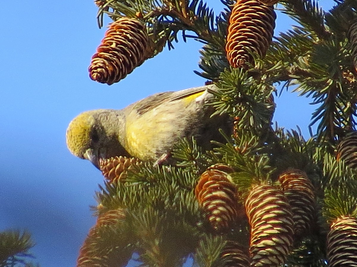 Птица ест шишки