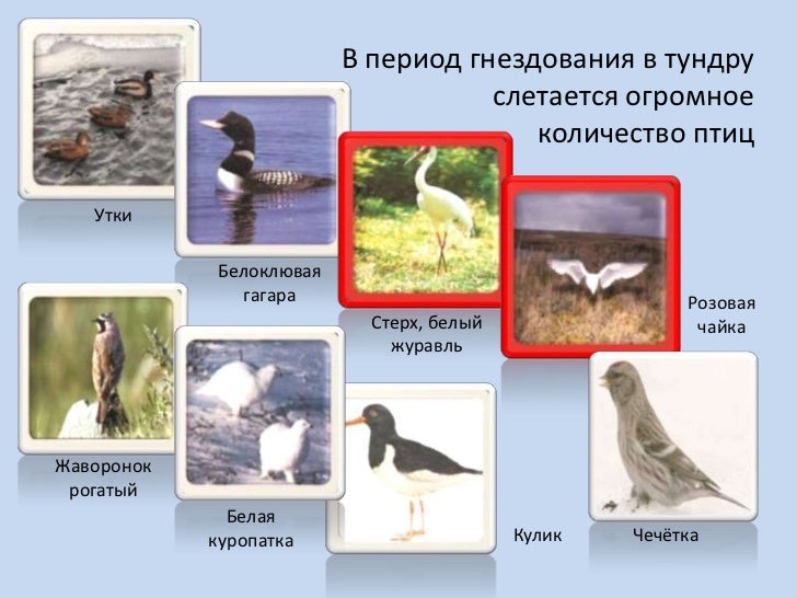 Птицы тундры . В тундре обитает множество птиц, как правило, прилетающих в эти холодные широты весной . Однако, среди них есть и те, которые живут в тундре постоянно .