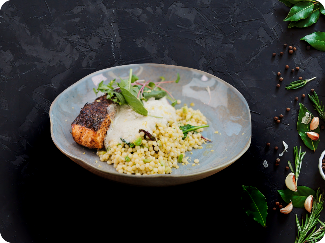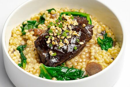 Птитим со шпинатом в сливочном