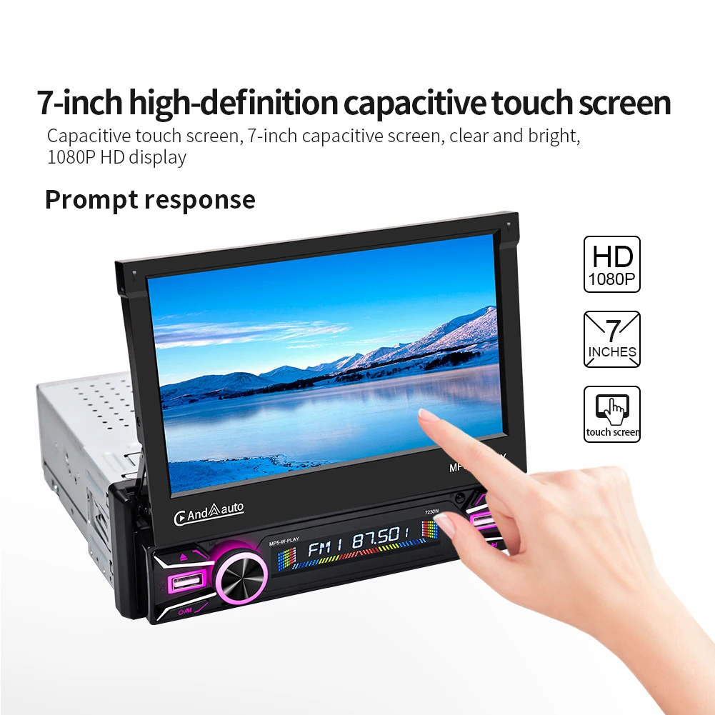 Ptopoyun 1 Din Android Auto Bluetooth Stereo 7 Inch Retractable Screen Carplay Automotive Multimedia Video MP5 Player No DVD - Купить с бесплатной доставкой