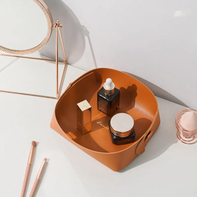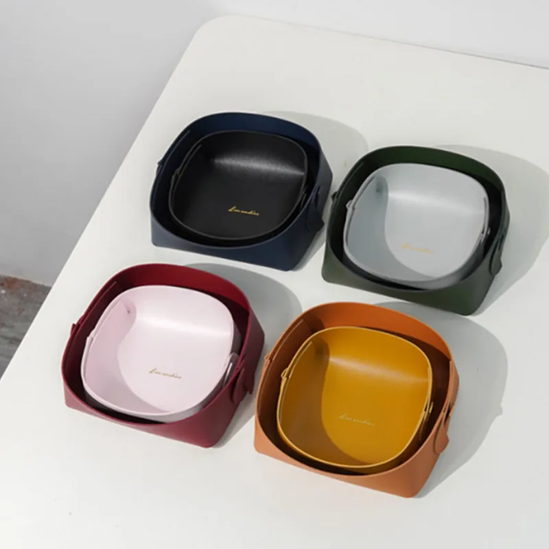 "Pu Leather Desktop Storage Box Key Plate Cosmetics Jewelry Porch Sundry Storage Box Storage Plate Folding Storage Box Wholesale" * Buy Now Just For 3$