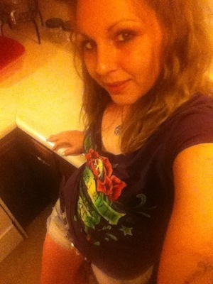 Slut in pink top and blue flowered dress...