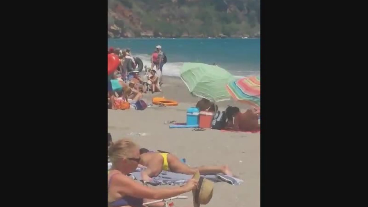 Public beach ejaculation