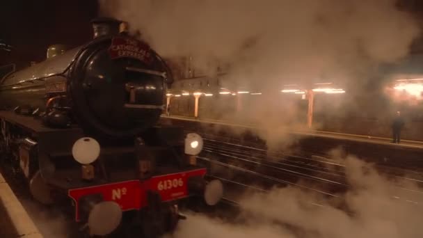 The film itself is a scene on a train platform . Riders mill about the station, while a black steam train pulls in toward the camera, which has been set up close to the edge of the tracks .