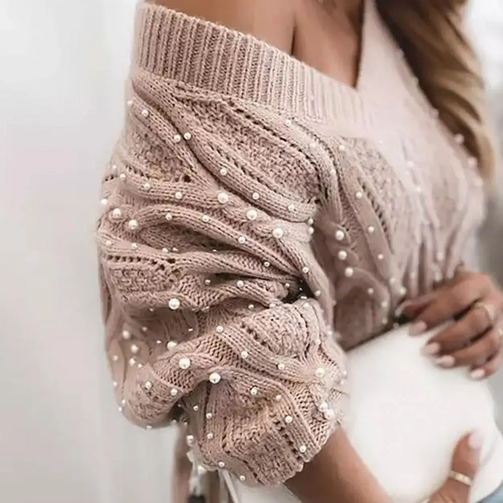 «Pullover Sweater Hollow Out Skin-Touch Imitation Pearls Decor Twist Knitted Pullover Sweater Knitted Sweater Sweater Top» по лучшей цене на рынке! Всего за 9$ (855рублей)