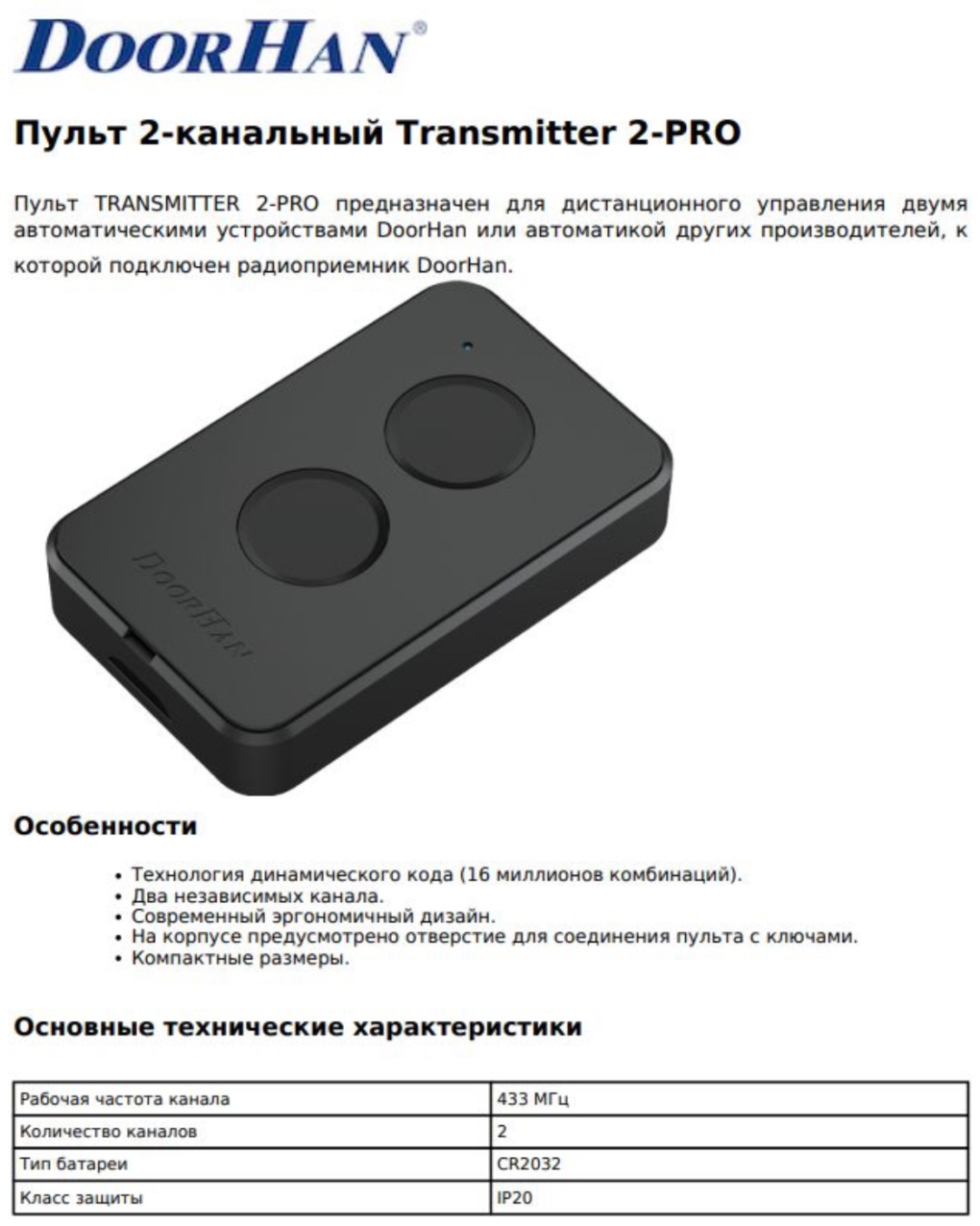 Пульт дистанционный doorhan