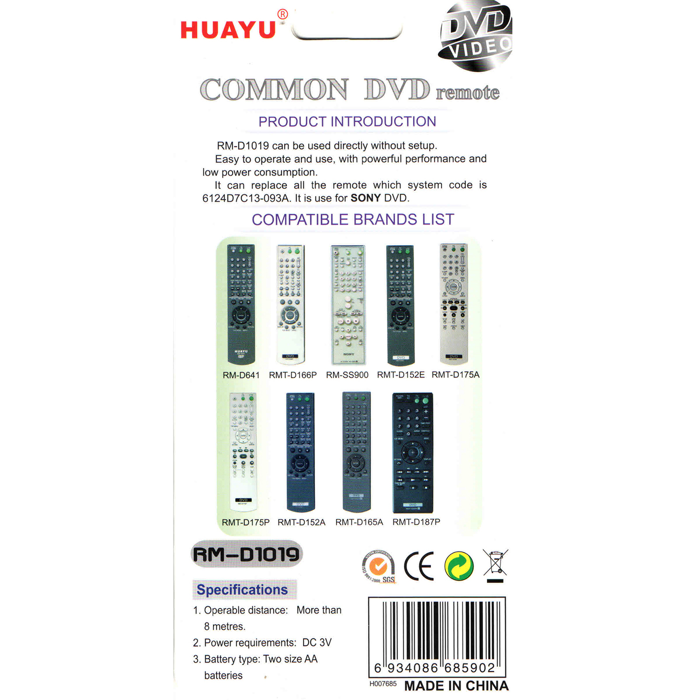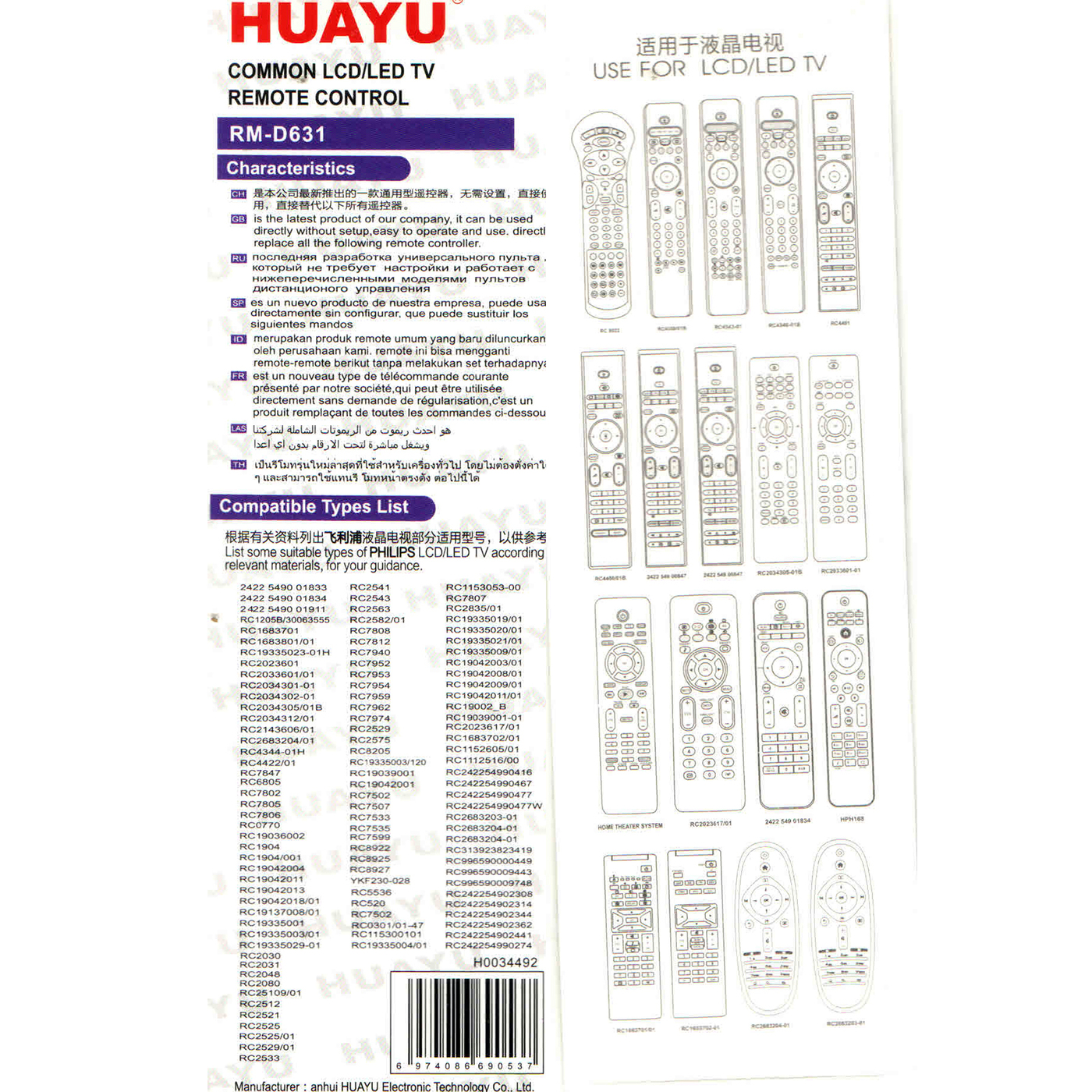 Пульт huayu rm d1078