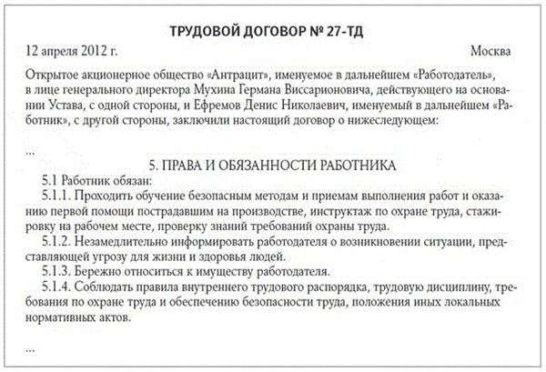 Пункт охраны труда в договоре