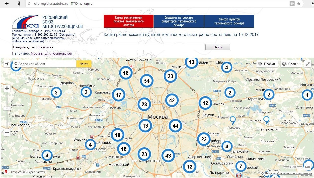 Пункты техосмотра москва