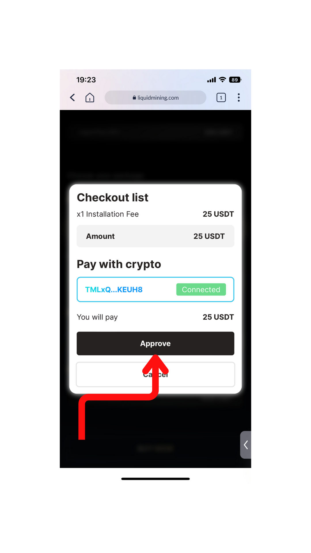 To approve the transaction, click on the "Approve" button.