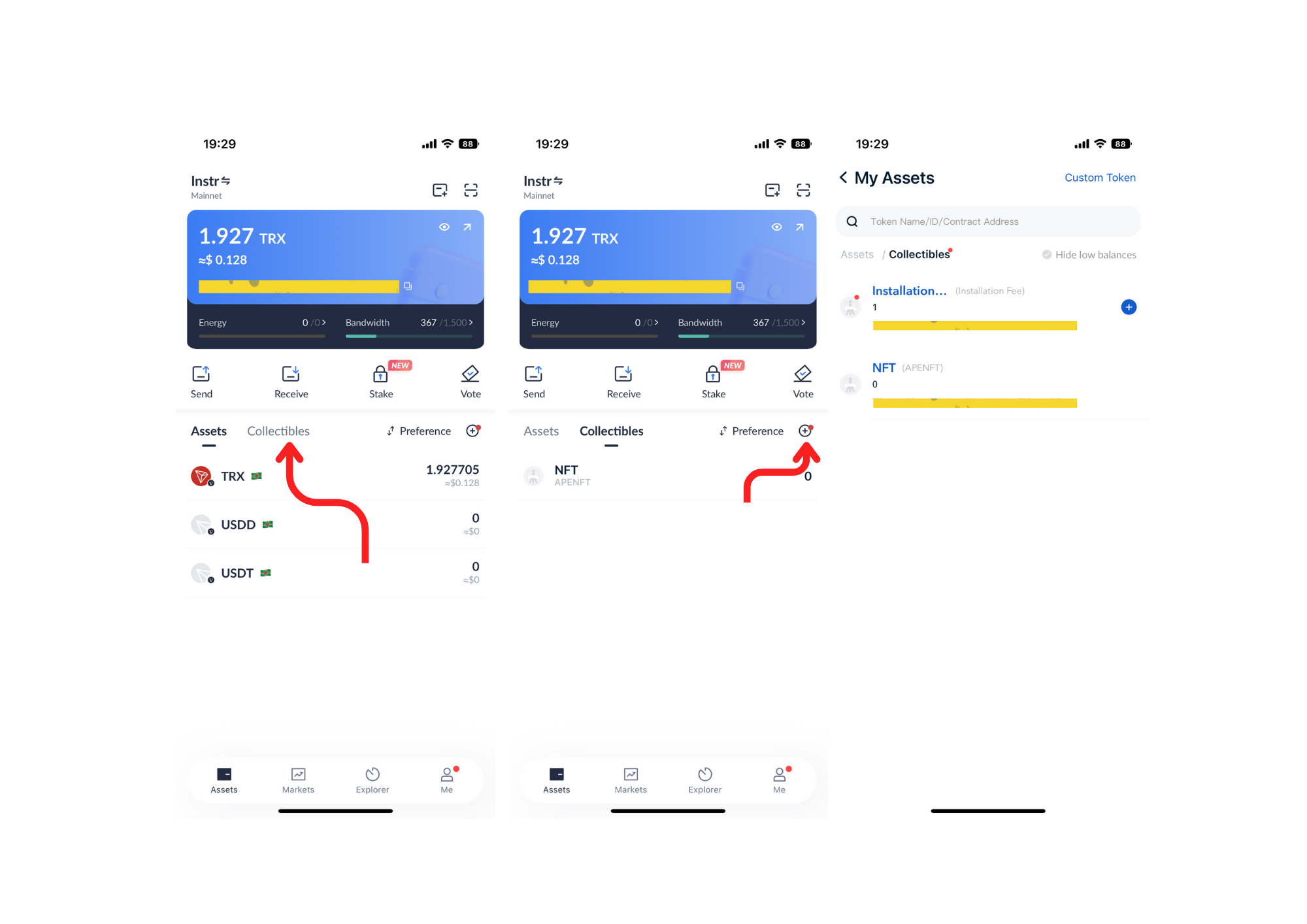 Simply return to your TronWallet homepage and click on the "Collectibles" icon, Click the "+" button beside the Preference sorting button. There, you can view the NFT(s) that you have purchased, along with the number of each item purchased. This will give you confirmation that the transaction was completed successfully.