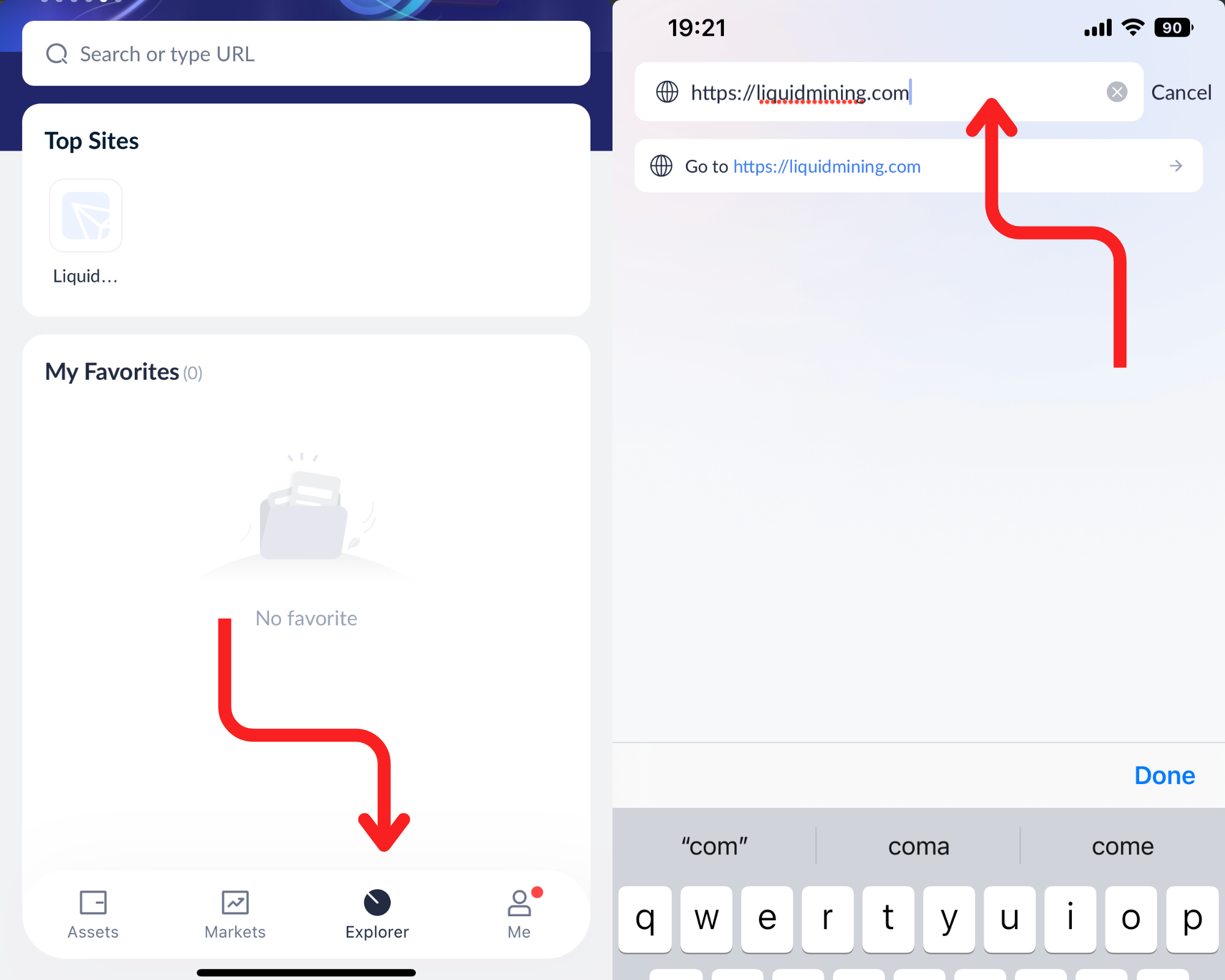 Once you have opened the browser, navigate to the search bar and enter Liquid Mining website https://liquidmining.com/ .