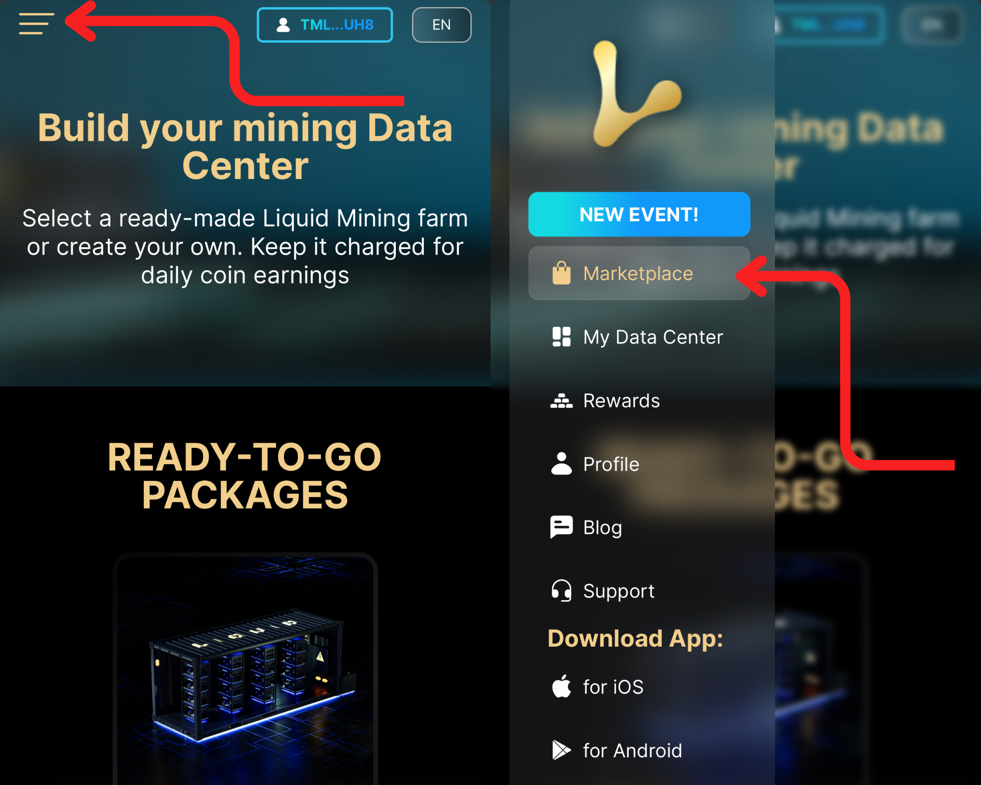 2. Sign-in on the Liquid Mining Website, Head to the Marketplace
