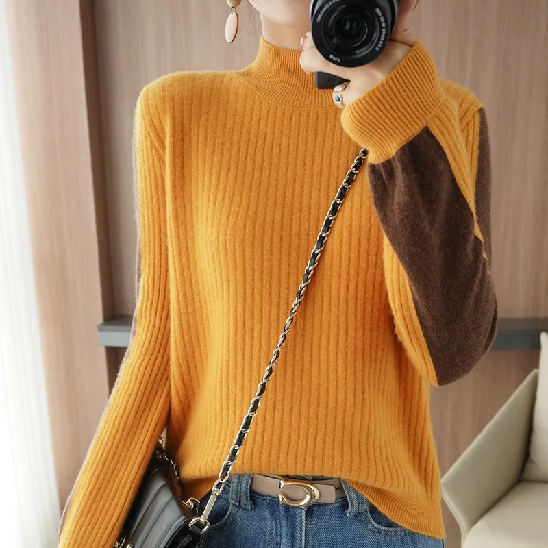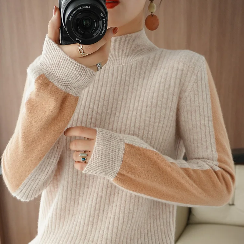 hMDdzaNgAДолго искали Pure Wool Base Sweater Women's 2021 Autumn Winter New Half High Neck Color Matching Long-Sleeved Fashion Loose Knitted Pullover, но не могли найти? Предоставляем вашему вниманию Pure Wool Base Sweater Women's 2021 Autumn Winter New Half High Neck Color Matching Long-Sleeved Fashion Loose Knitted Pullover по лучшей цене на рынке!