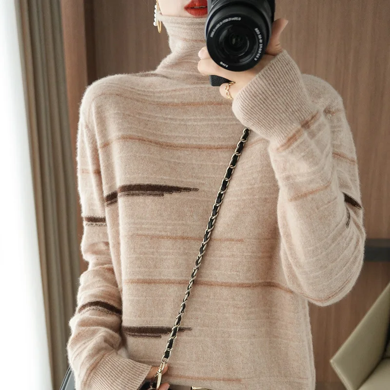 «Pure Wool Pullover Women's Autumn/Winter 2021New Fashion Personality Color Stripe Curled Turtleneck Sweater Loose Knit Bottoming» по лучшей цене на рынке! Всего за 49$ (4655рублей)