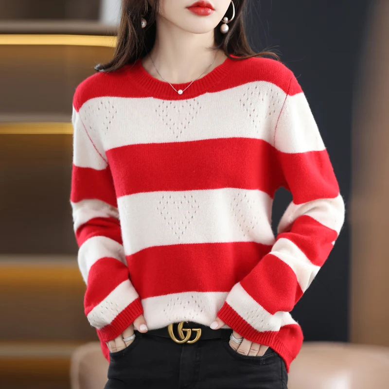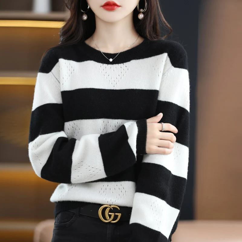 «Pure Woolen Sweater Women' 2022 AutumnWinter New Round Neck Pullover Stripe Loose Slim Cashmere Knitted Undercoat Korean Version» по лучшей цене на рынке! Всего за 40$ (3800рублей)