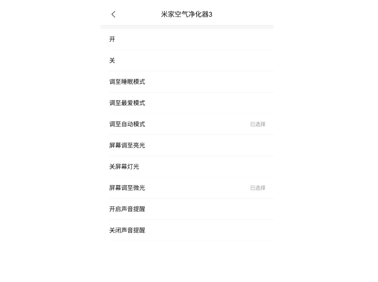 截至发稿时,“智能”还只能控制米家空气净化器 3 调至“自动模式”“睡眠模式”“最爱模式”这三个模式,不能调至“1级”“2级”“3级”,更不能手动精细控制转速。