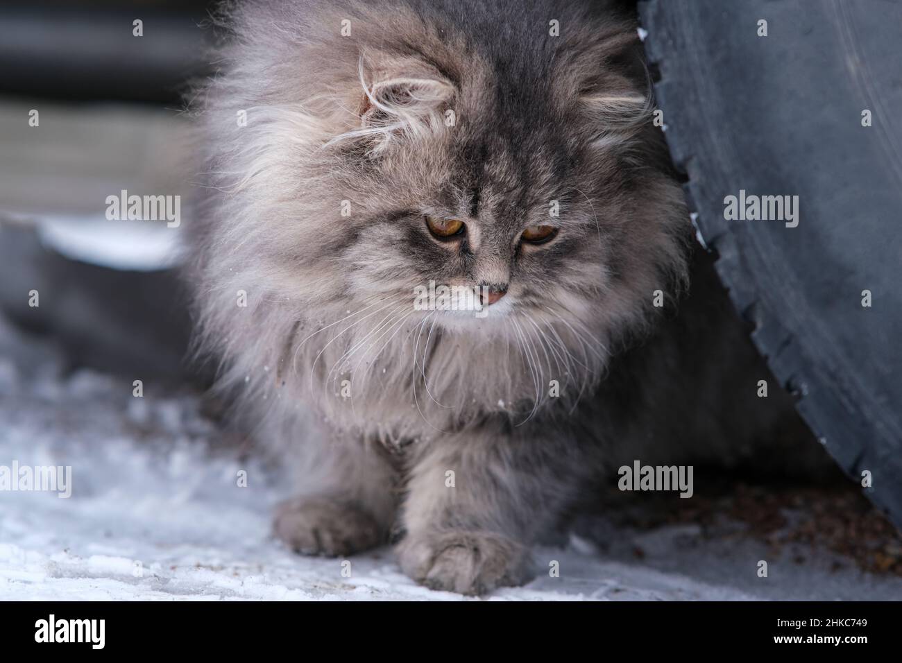 Пушистый серый котик
