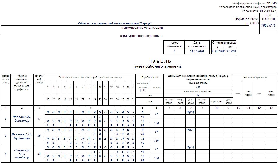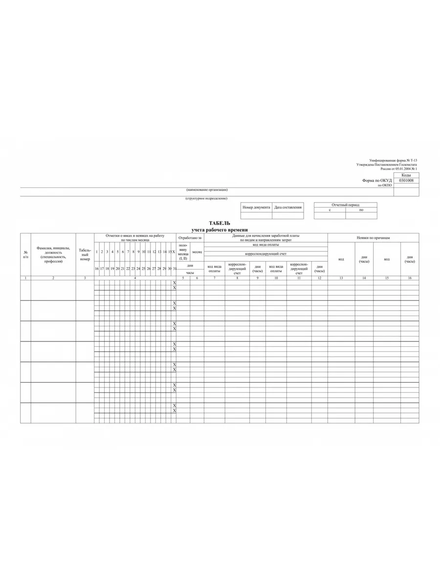 Пустой табель учета