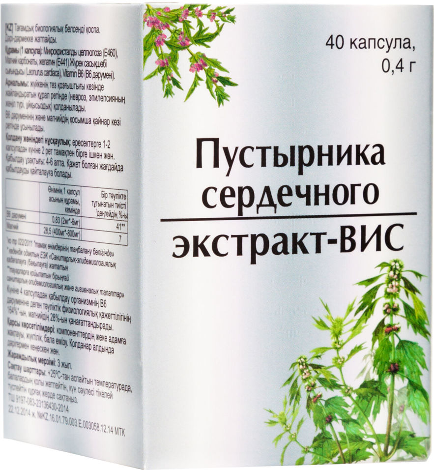 Производитель: Эвалар ЗАО . Пустырника трава - Пустырник пятилопастный (Leonurus quinquelobatus), пустырник обыкновенный или сердечный (Leonurus cardiaca) . Семейства губоцветные - Lamiaceae (Labiatae) .