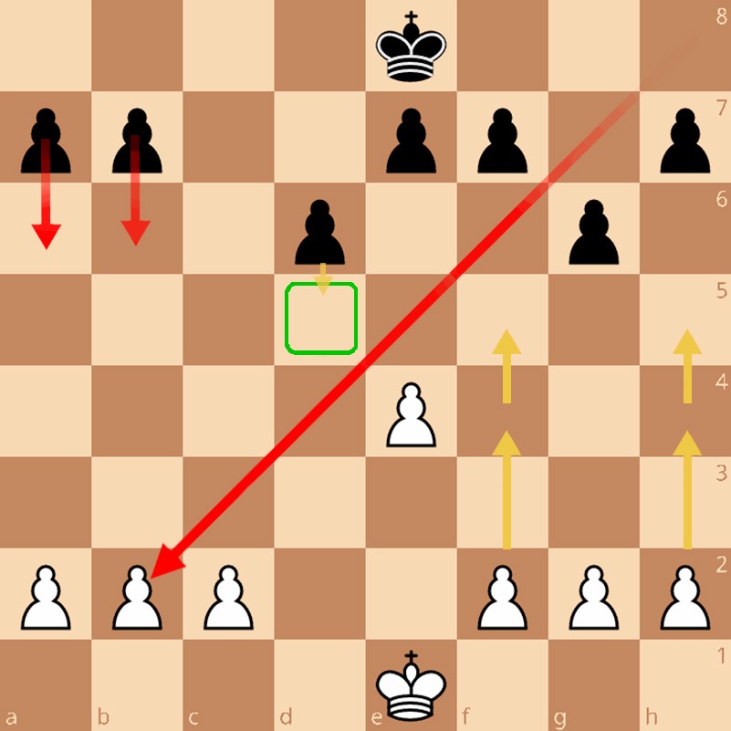 Открывает возможности для крепкой игры черных. Белым нужно активно действовать на ферзевом фланге (атака пешечным меньшинством) или в центре.