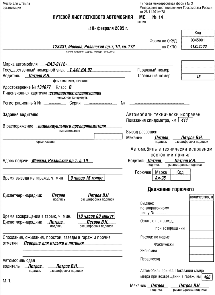 Путевой лист генеральному директору 134 фотографий