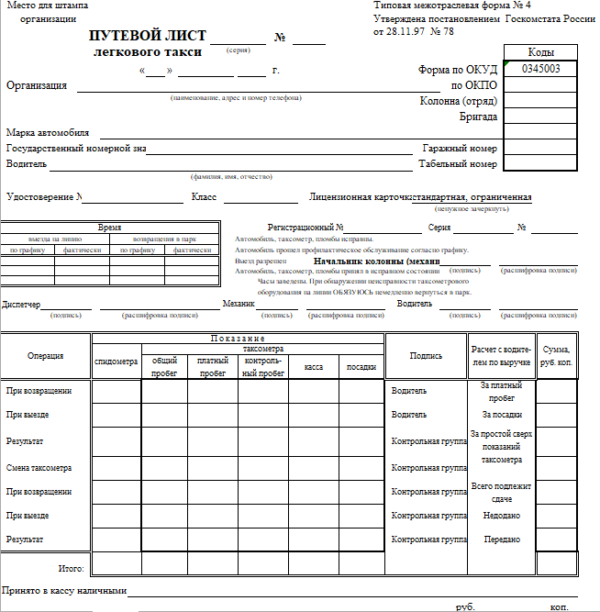 Путевой лист по часам 133 фото