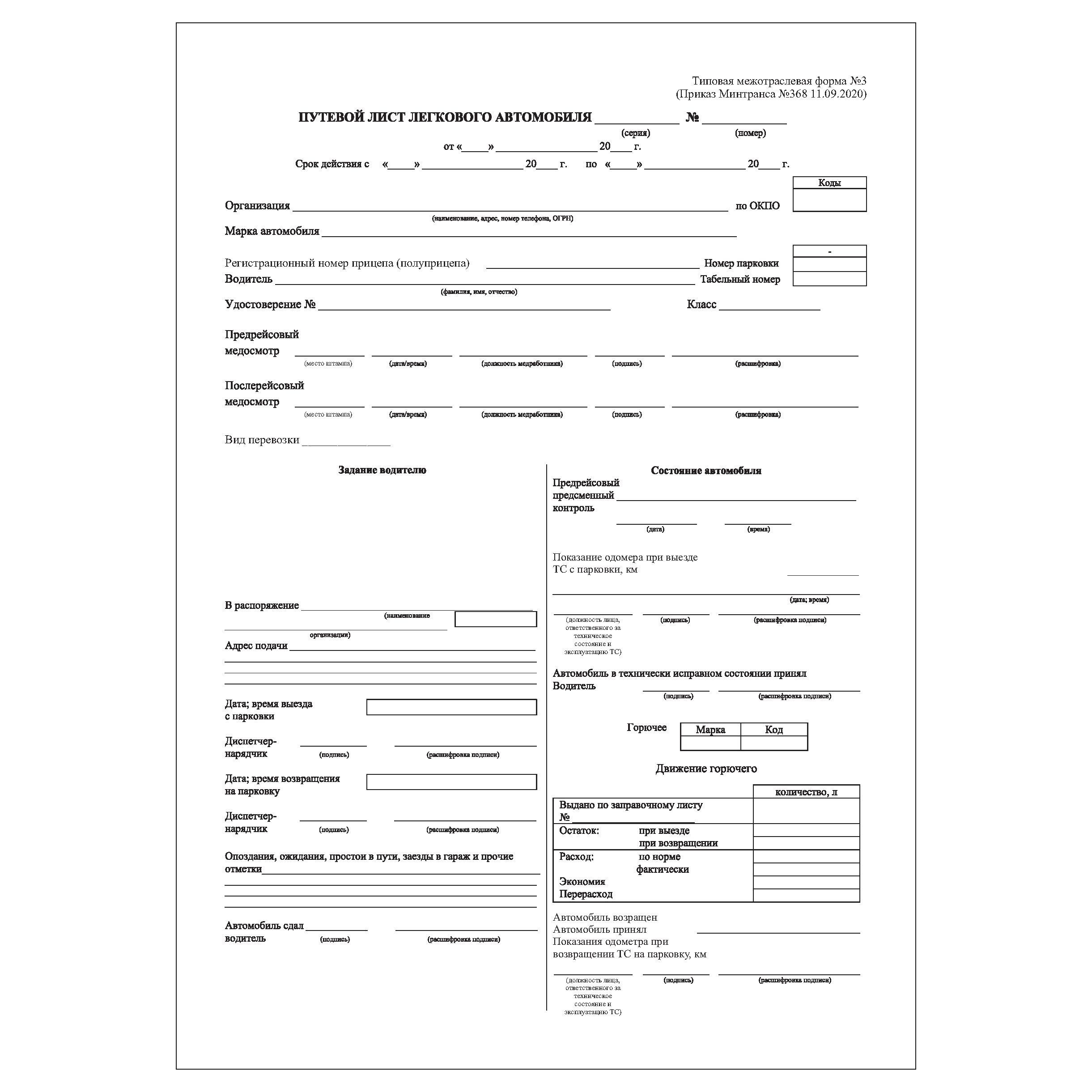 Путевой лист с 01.09 2025 бланк 108 фото