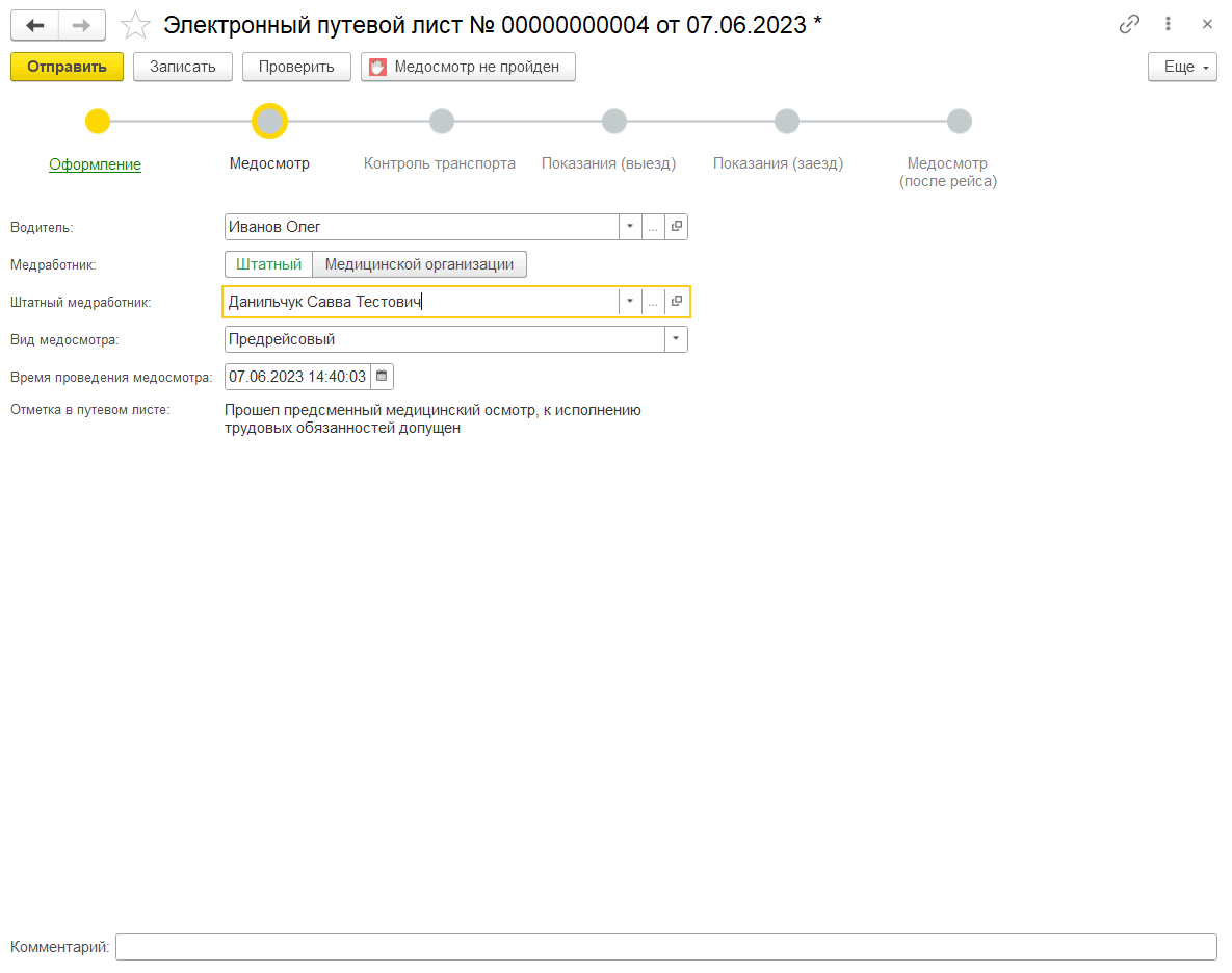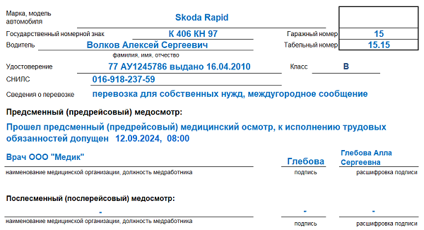 Путевой лист с медосмотром