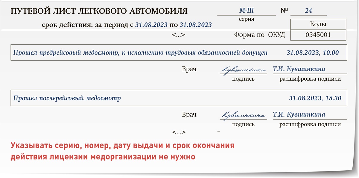 Путевой лист с медосмотром 109 фото