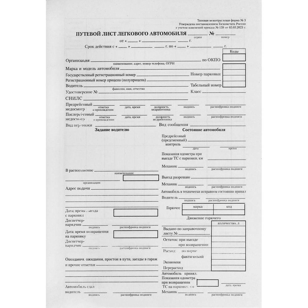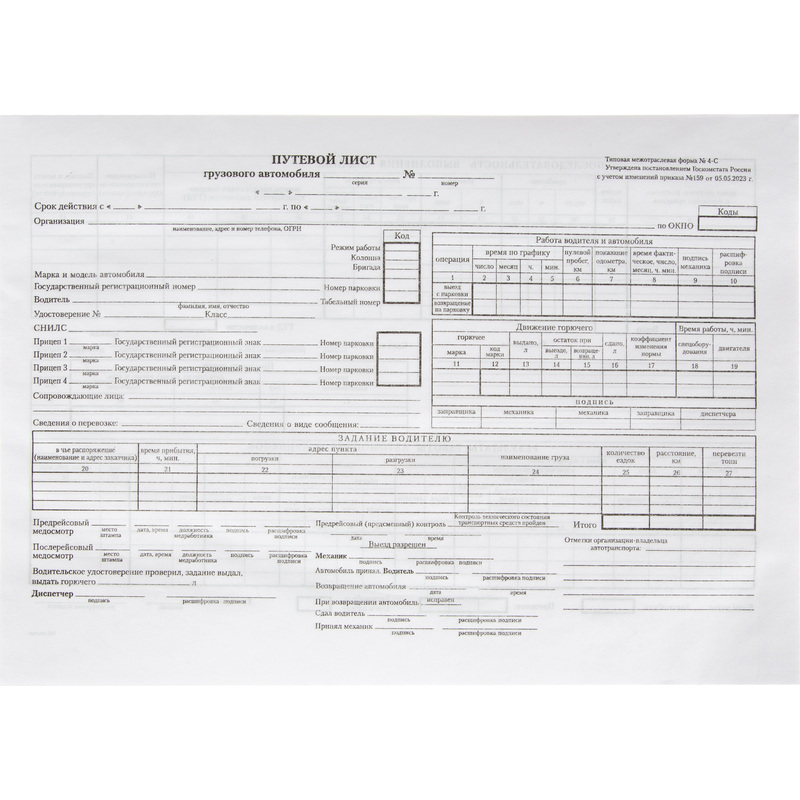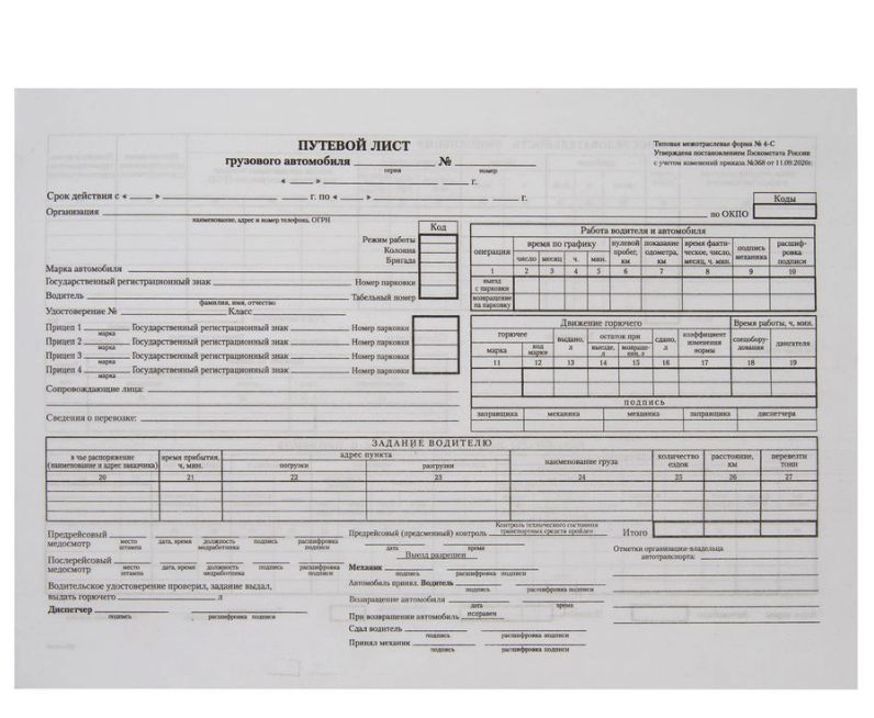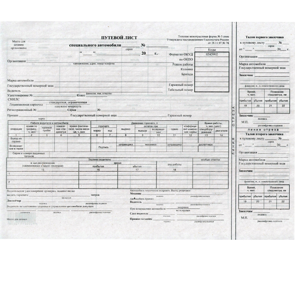 Путевой лист уаз 129 фотографий