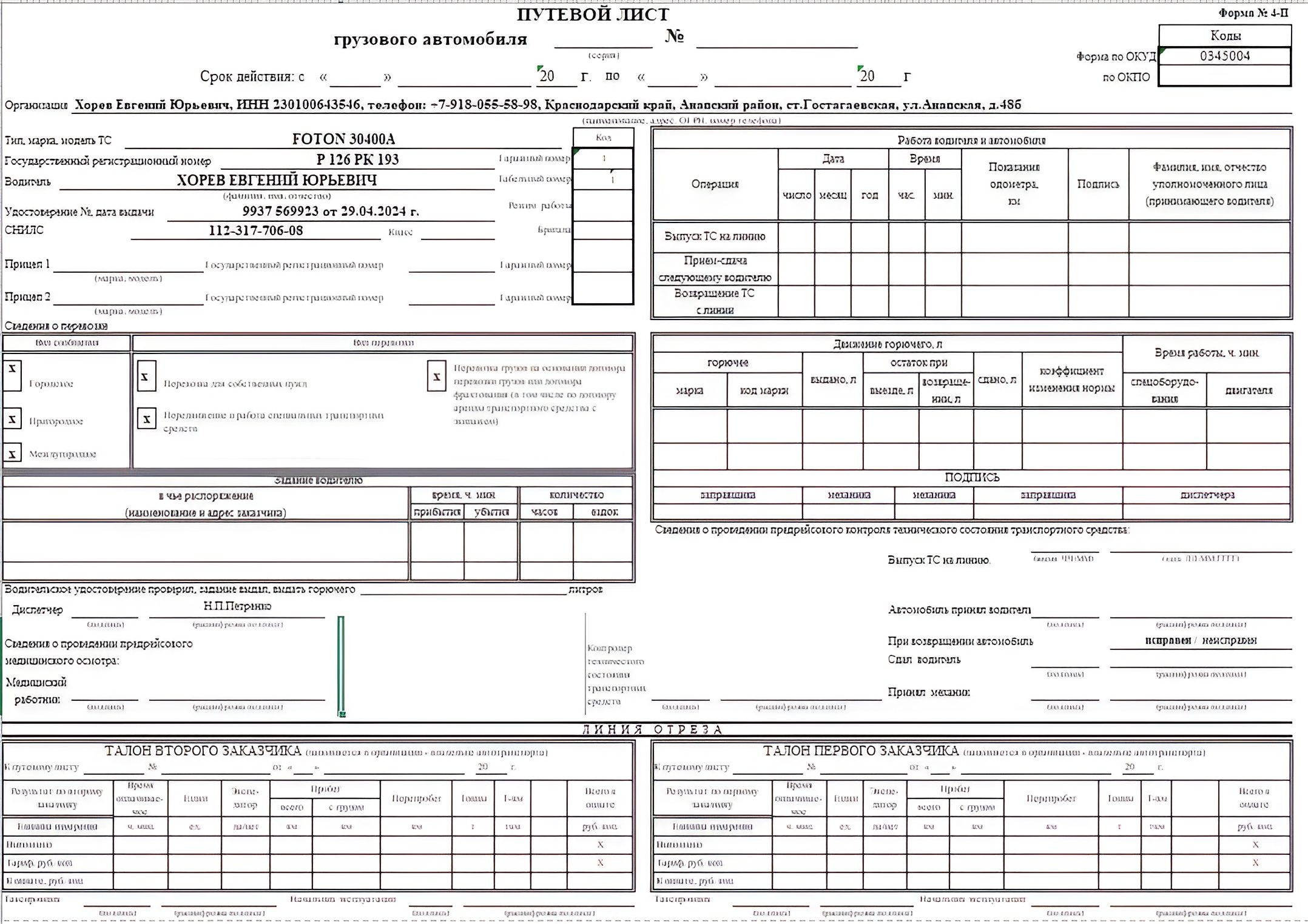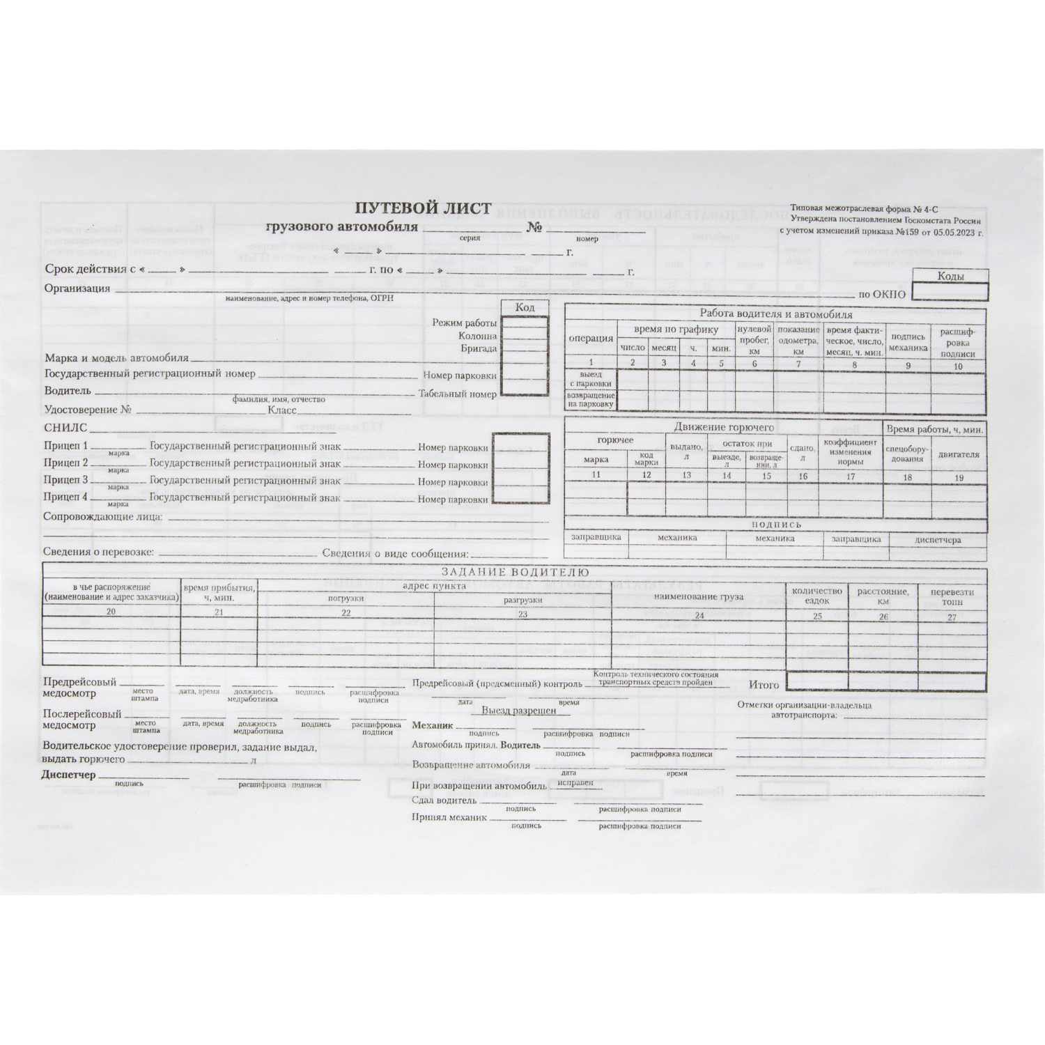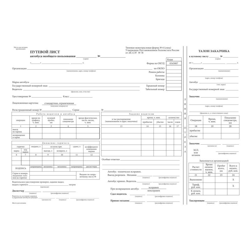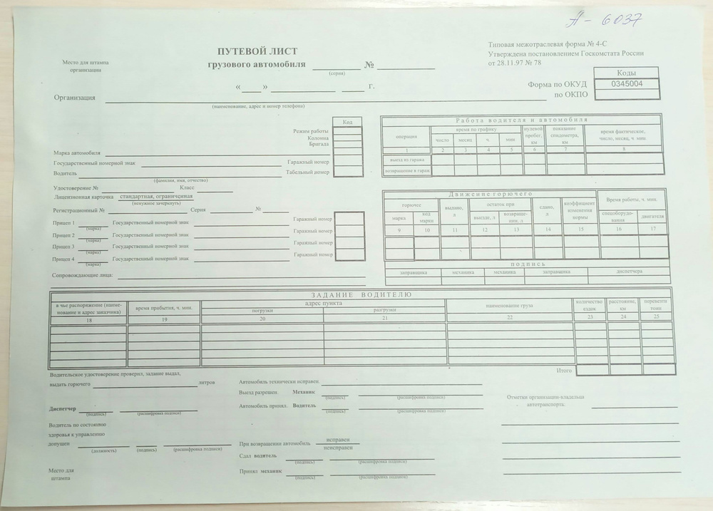 Путевой лист уаз 129 фотографий