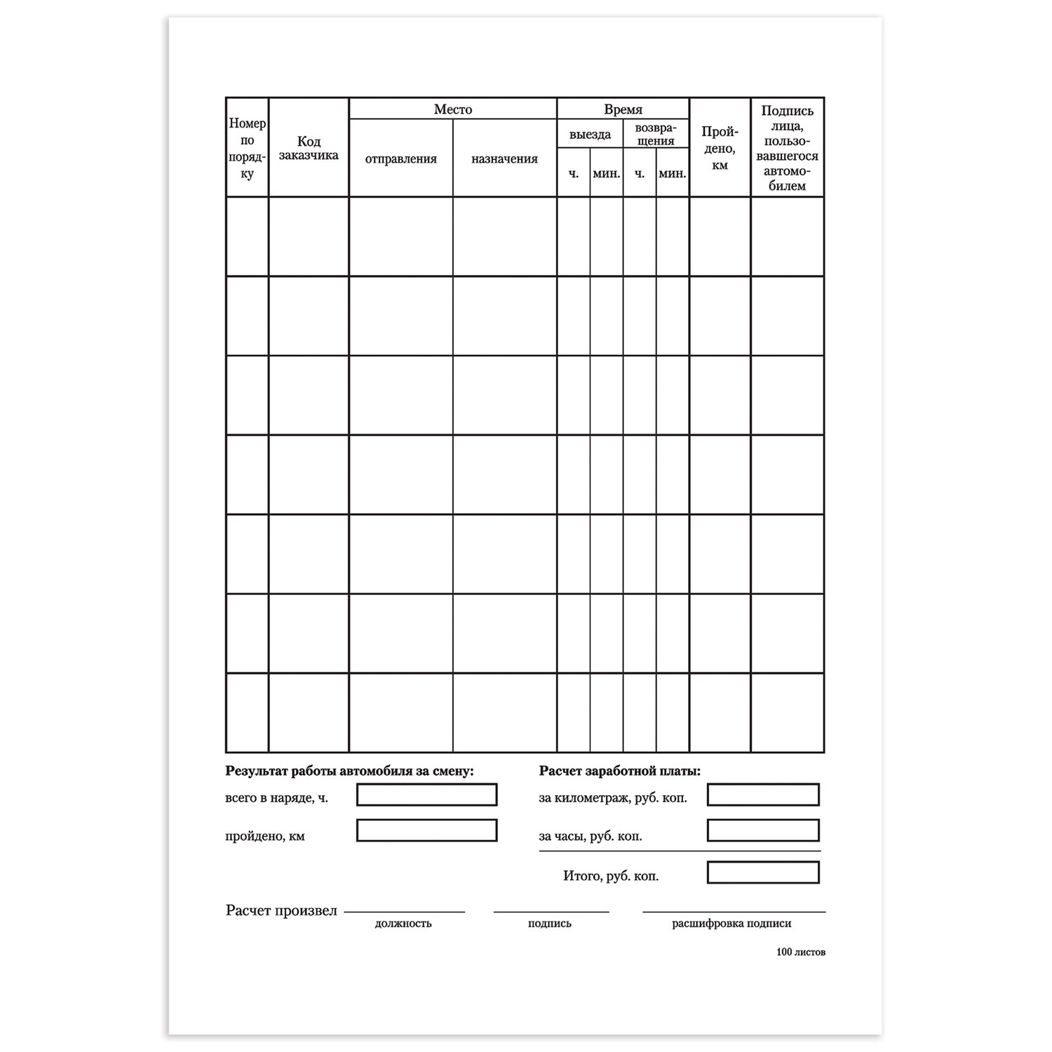 Путевой лист учет расходов 109 фото