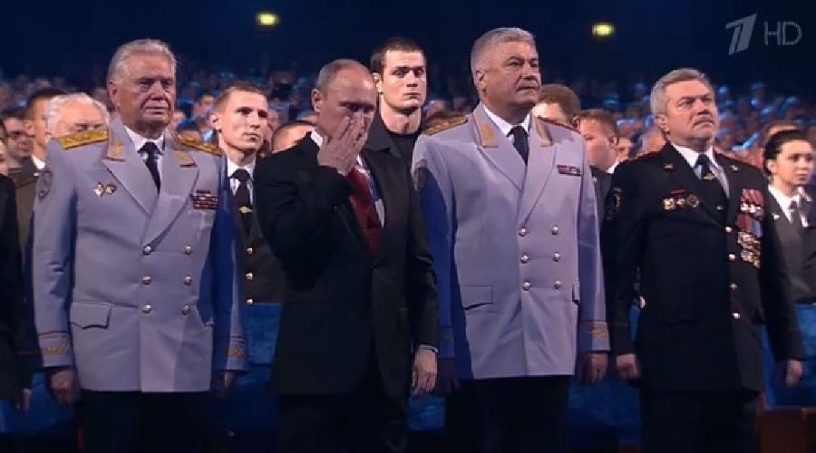 Путин периодически попадает в объектив телекамер и фотоаппаратов в слезах . Президент плачет от собственных побед, от мыслей о погибших полицейских и когда слышит гимн России или на то есть другие причины?