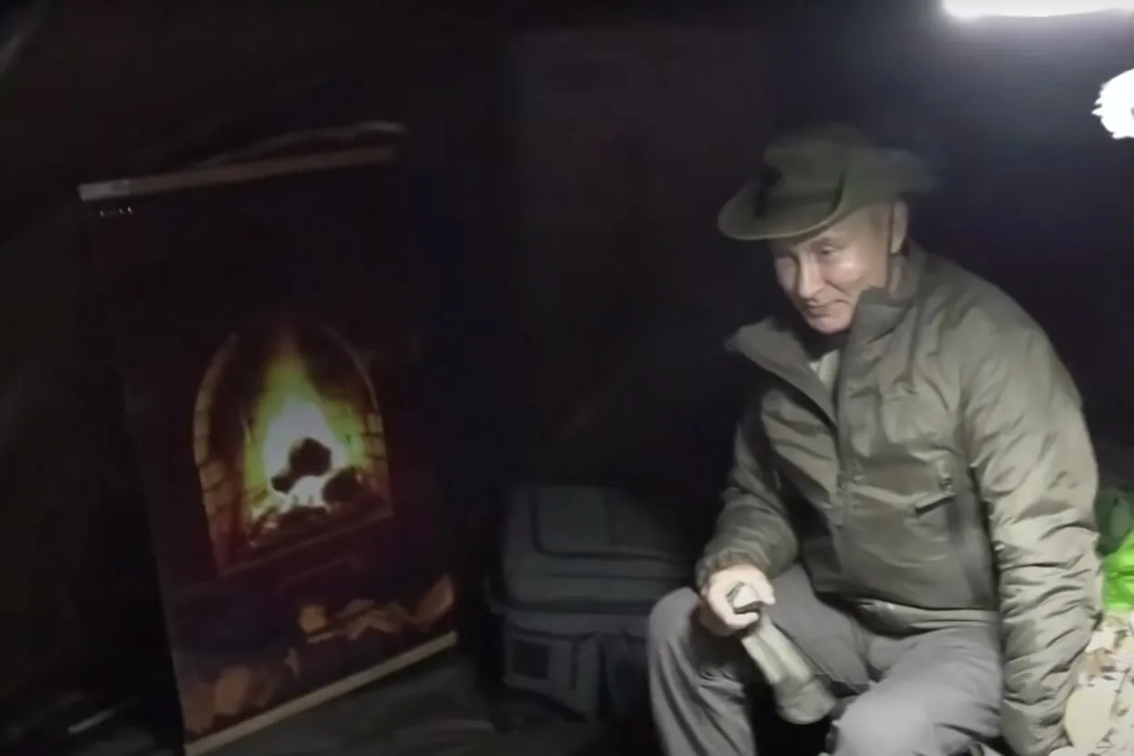 В тайге Путин грелся в палатке с нарисованным камином . . .