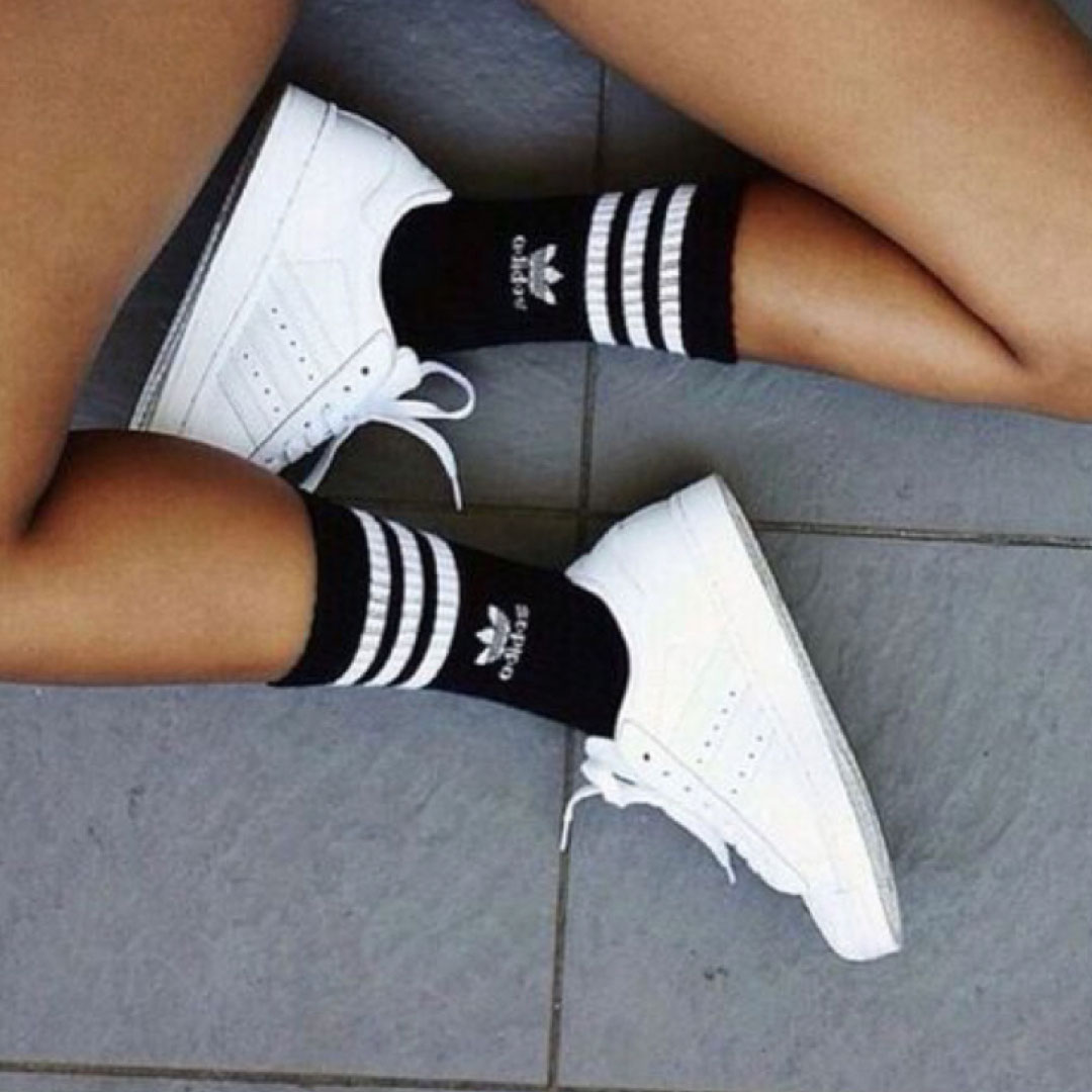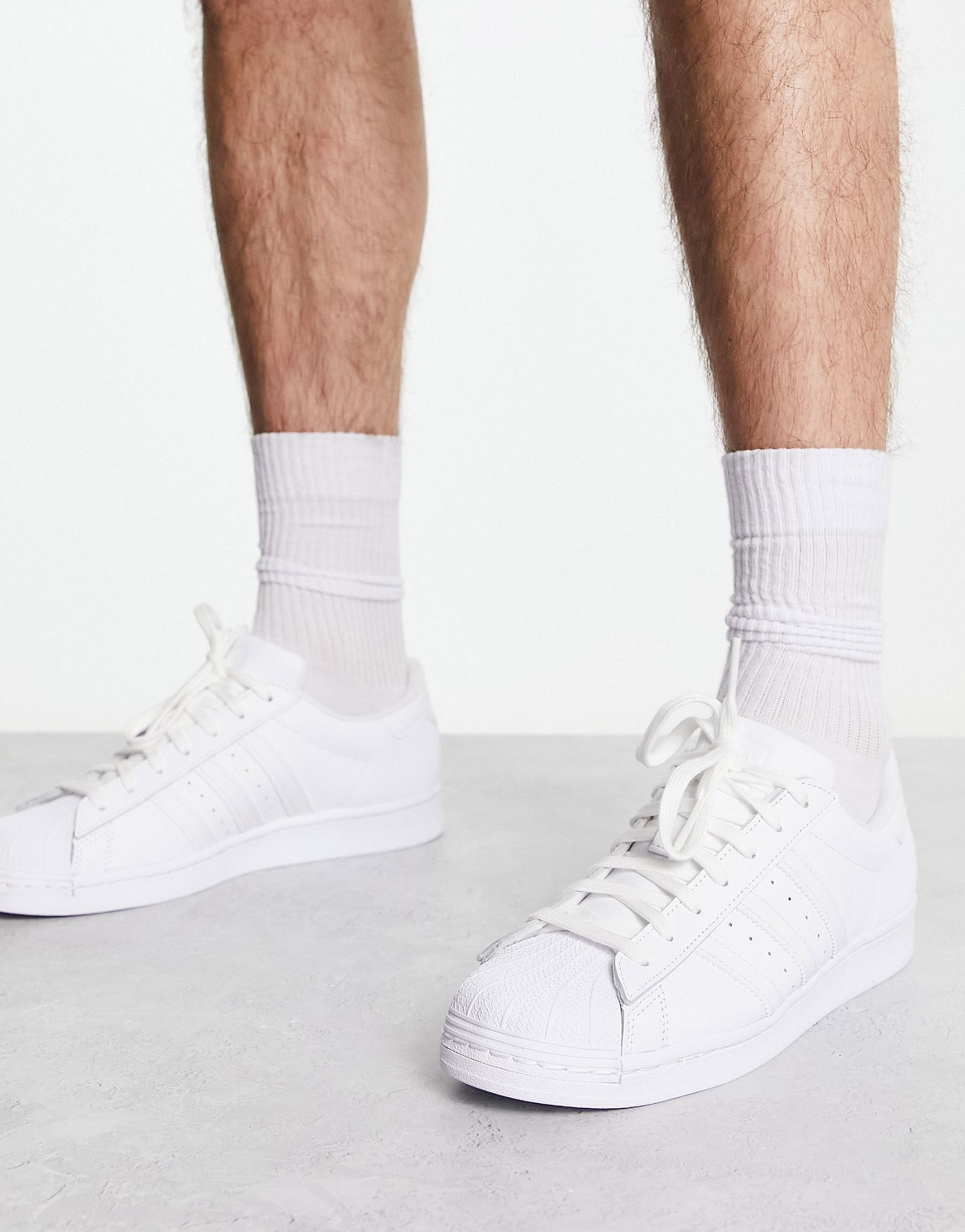 Putting adidas superstar with white socks