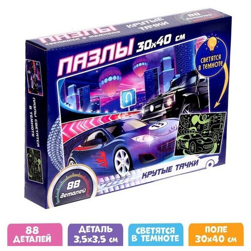 Puzzles lumineux « Cool cars », 88 pièces. Ce n'est pas seulement un puzzle, mais un jeu de puzzle magique ! Il suffit d'éteindre la lumière dans la pièce et vous verrez comment l'image assemblée, grâce à la peinture spéciale, commence à briller dans le noir. Le puzzle se compose de grandes pièces, ce qui est très pratique pour les petits doigts. Taille d'une pièce : 3,5 x 3,5 cm.(4659852)Puzzles lumineux « Cool cars », 88 pièces. Ce n'est pas seulement un puzzle, mais un jeu de puzzle magique ! Il suffit d'éteindre la lumière dans la pièce et vous verrez comment l'image assemblée, grâce à la peinture spéciale, commence à briller dans le noir. Le puzzle se compose de grandes pièces, ce qui est très pratique pour les petits doigts. Taille d'une pièce : 3,5 x 3,5 cm.(4659852)