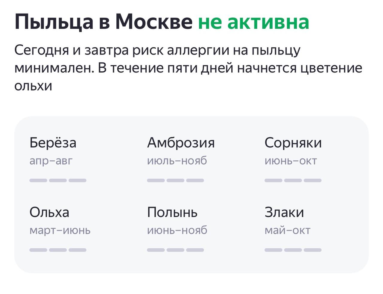 Пыльца в москве сейчас