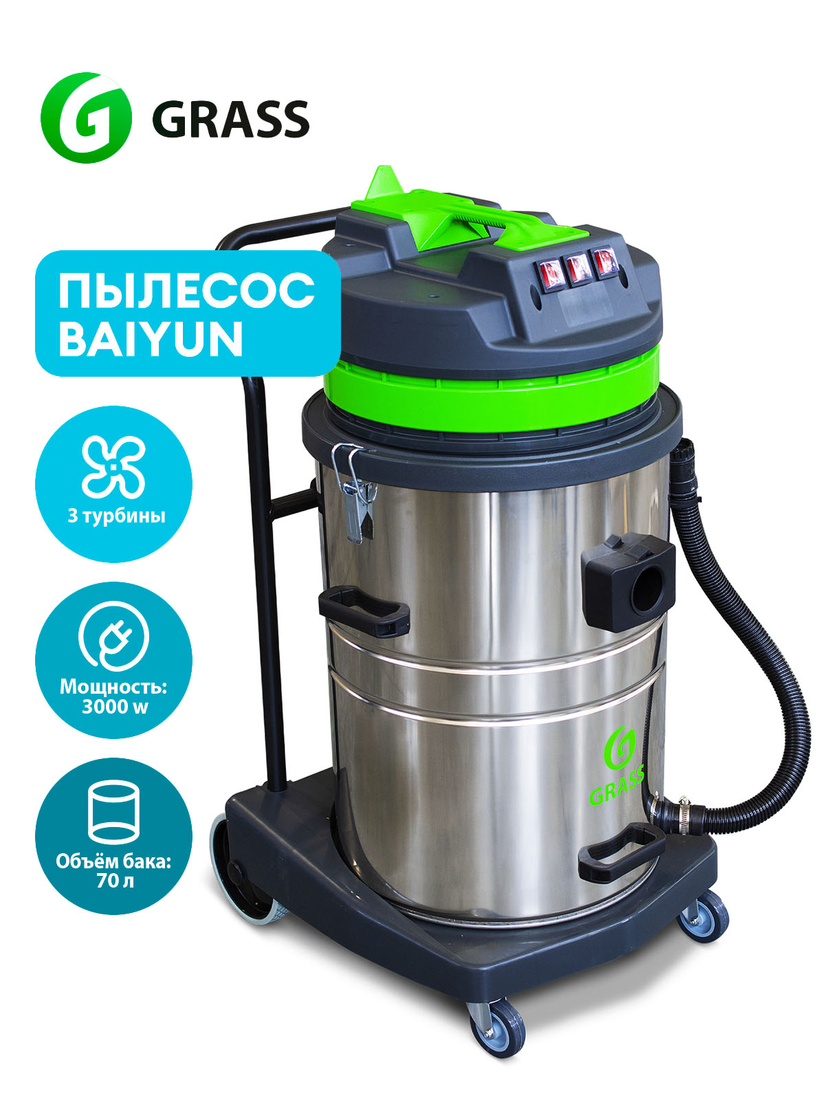 Пылесос baiyun 70л 3 турбины ps 0118