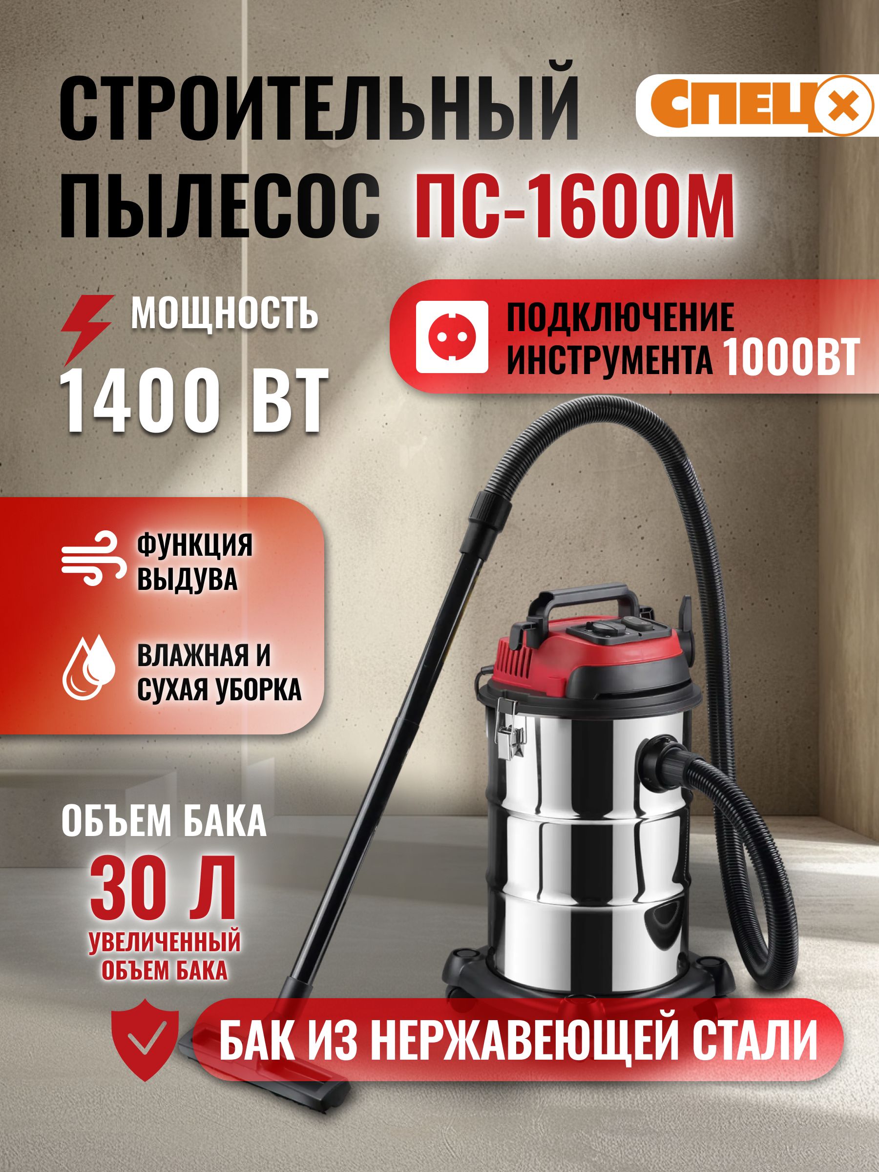 Пылесос строительный пс 1600м