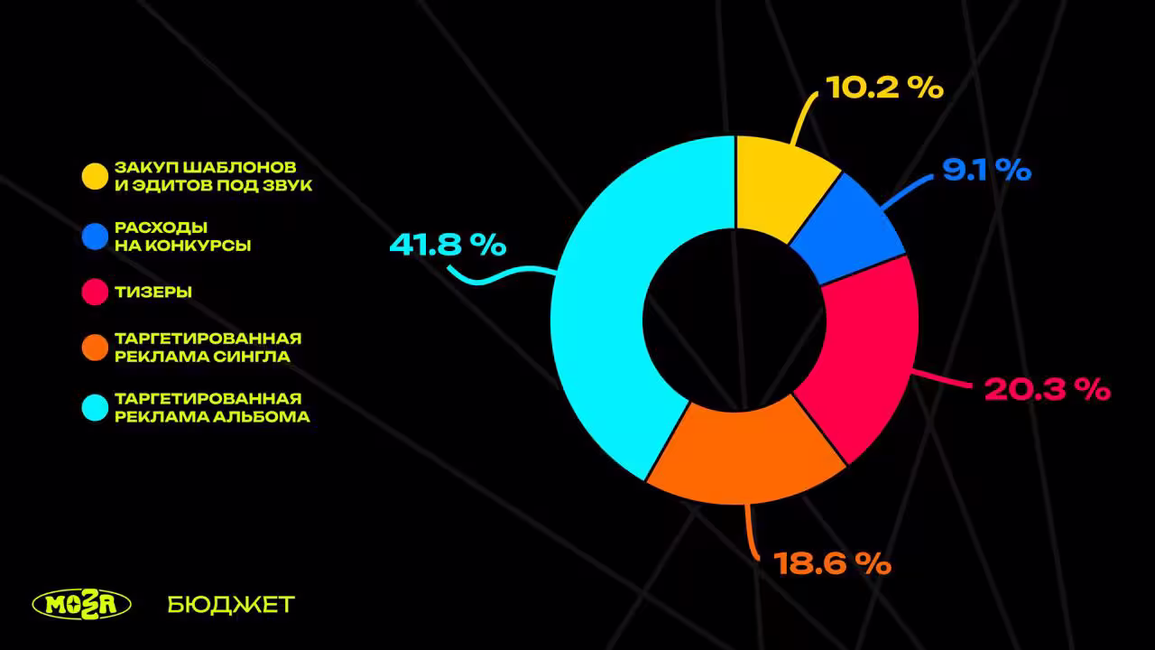 • Закуп шаблонов и эдитов под звук – 50 000 рублей. А куда без вертикалок? История стара как мир: закупаем эдиты под звуки, сеем их, а потом получаем хороший отклик на релиз.