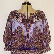 Платье длиной до икр из ткани с мерцающим покрытием. V-образный вырез горловины с узкими лентами и объемные пышные рукава на сборке на узкую резинку снизу. Отрезная талия со швом спереди и резинкой сзади, юбка клеш. Без подкладки.