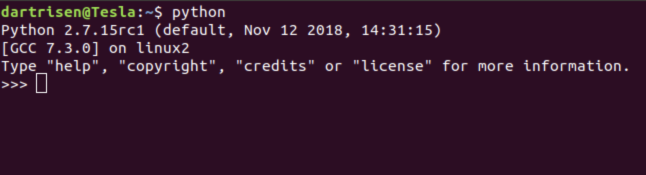 Если вы используете Linux на своей рабочей машине, то возможно Python уже установлен в системе. Открываем терминал и набираем слово python(python3, если работаем с третьей версией) в консоли. Если вы работаете в Ubuntu и пайтона под рукой не оказалось, открываем терминал и устанавливаем его с помощью команды sudo apt-get install python. Это один из самых простых способов установить python на linux машине. Если этот способ вам не по душе, вы можете скачать исходники и собрать их с помощью команды make.