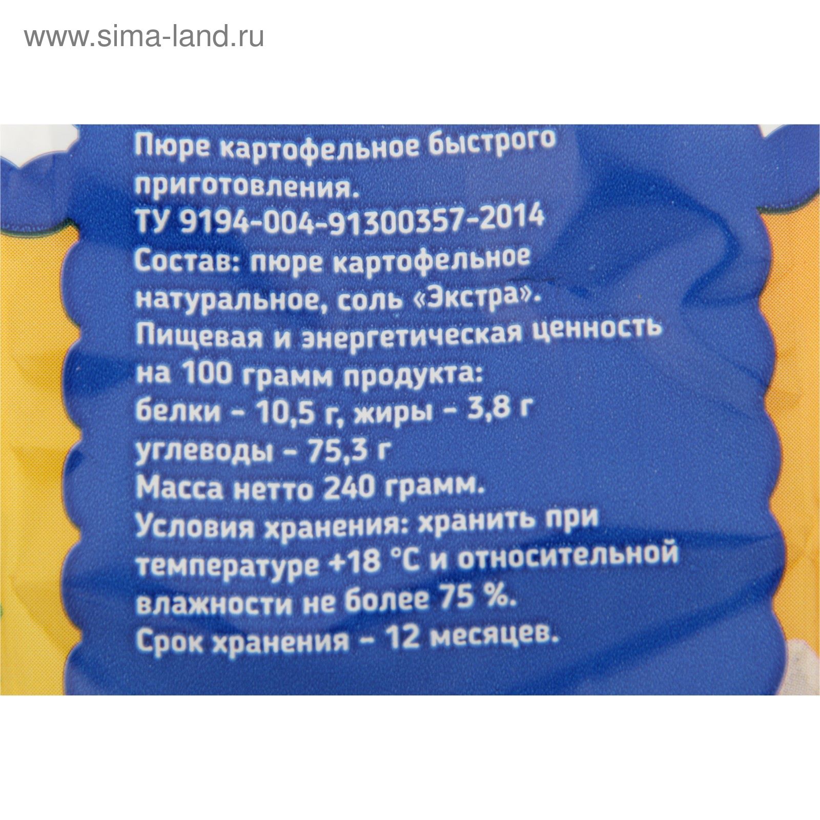 Пюре картофельное масса