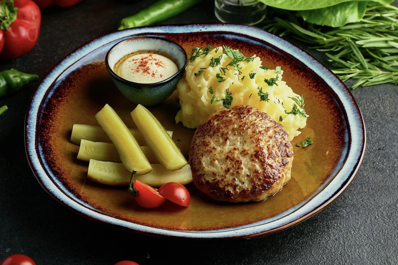 Пюре с домашней котлетой
